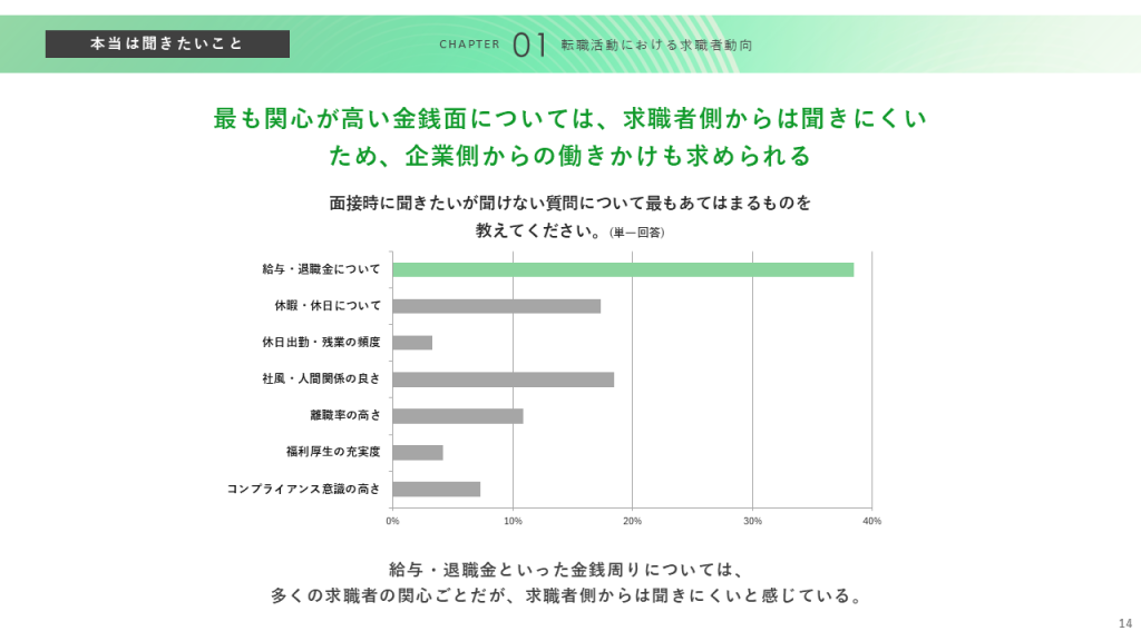 多くの求職者が金銭面に強い関心を持ちつつも、自身から切り出すことに抵抗を感じている実態が浮き彫りになりました。