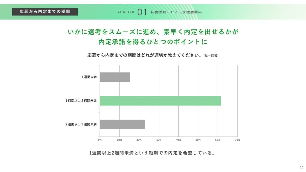 「1~2週間で内定」を希望する層が約60%でスピード感が重要