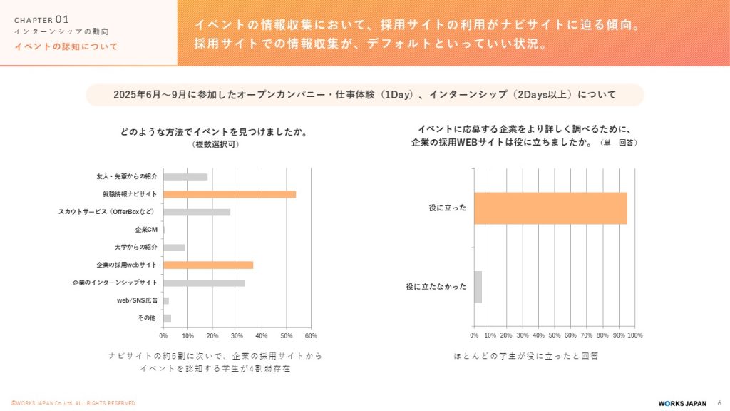 イベント情報の収集経路として、採用サイトを利用する学生が約4割と、ナビサイトに次ぐ主要チャネルとなっています。