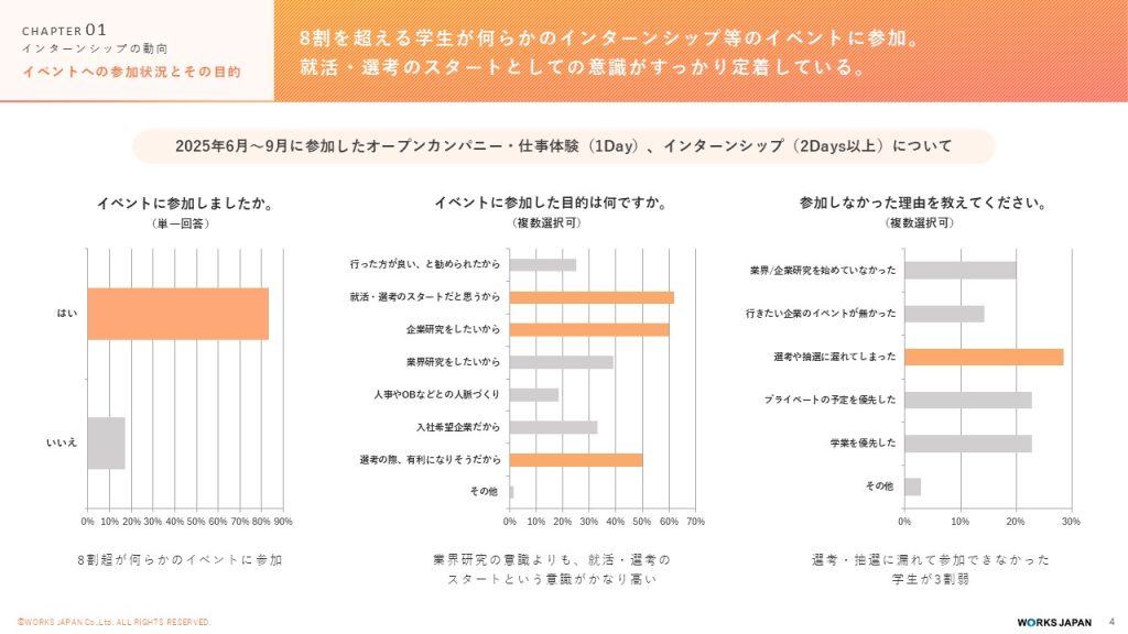 特に注目すべきは、参加理由の中心が“選考意識”にシフトしている点。
